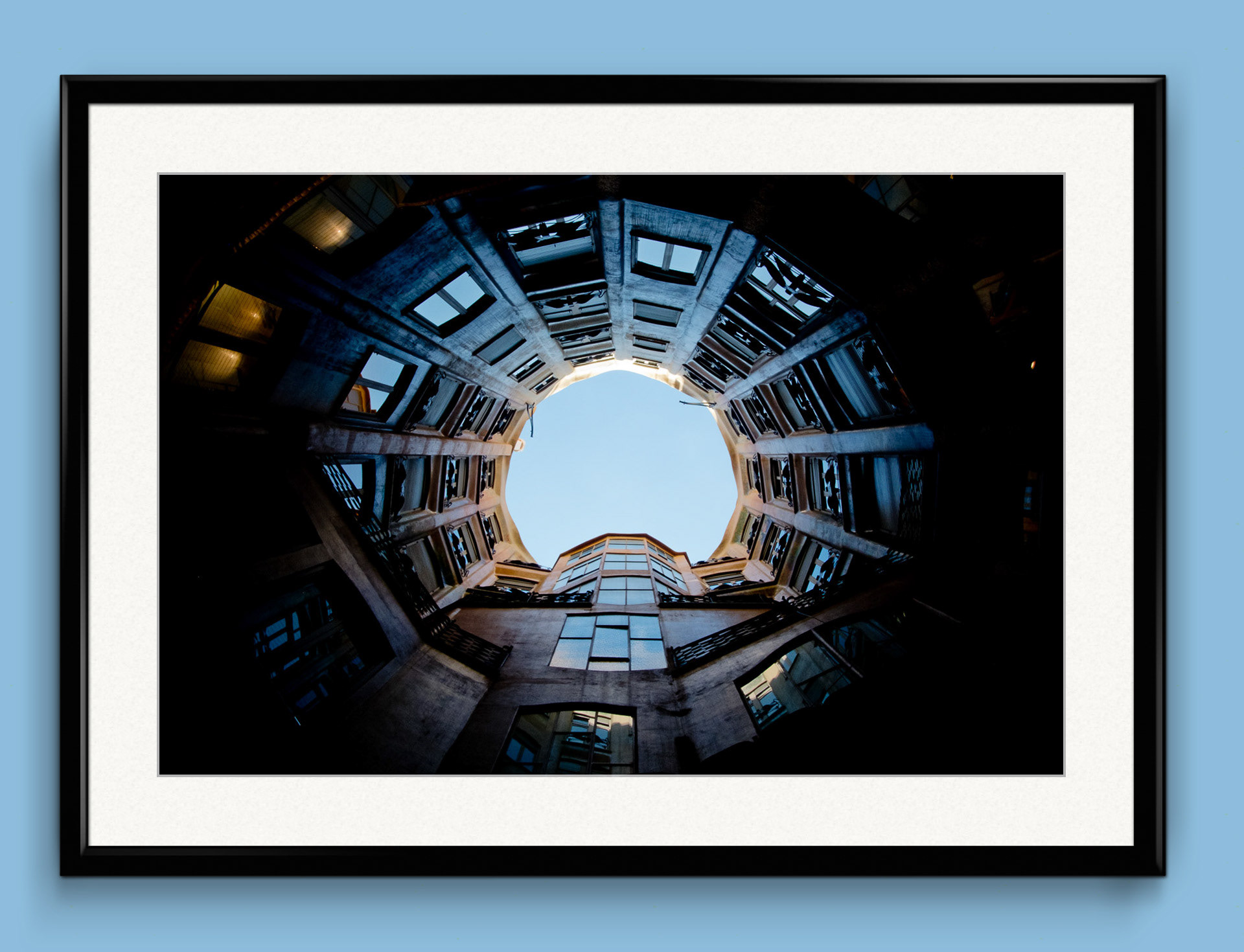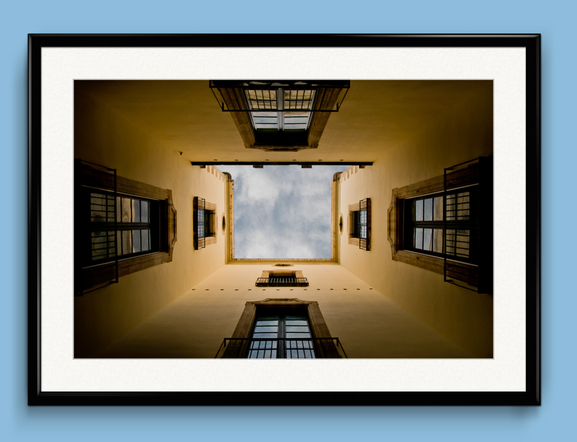 Alzare lo sguardo rivela porzioni di cielo racchiuse in cornici create dall'uomo.